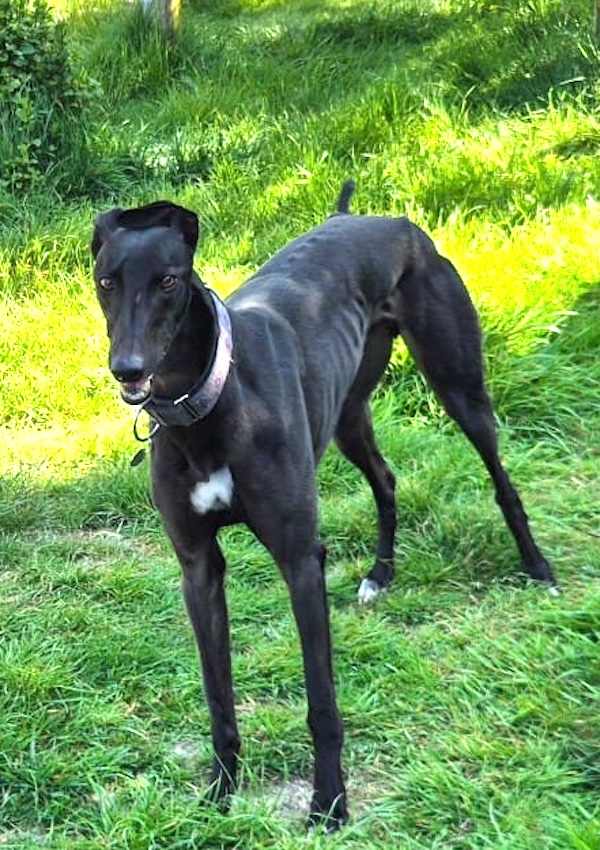 Swift is a loving, fun-spirited dog who will thrive with a patient family willing to help him settle into home life. He has a cheeky side and may try a bit of counter surfing if given the opportunity, so consistent guidance will help him shine. He has a gentle and affectionate nature, loves playing with his toys, and is happiest when he’s stretched out enjoying a sunny spot. Swift could happily live with a calm female greyhound or a larger lurcher, but he’s not suited to homes with cats or small furry pets. Swift can live with children aged 8 and over who understand how to interact respectfully with dogs. If you’re looking for a playful, loving companion and are ready to help him adjust and thrive, Swift could be the perfect addition to your family.